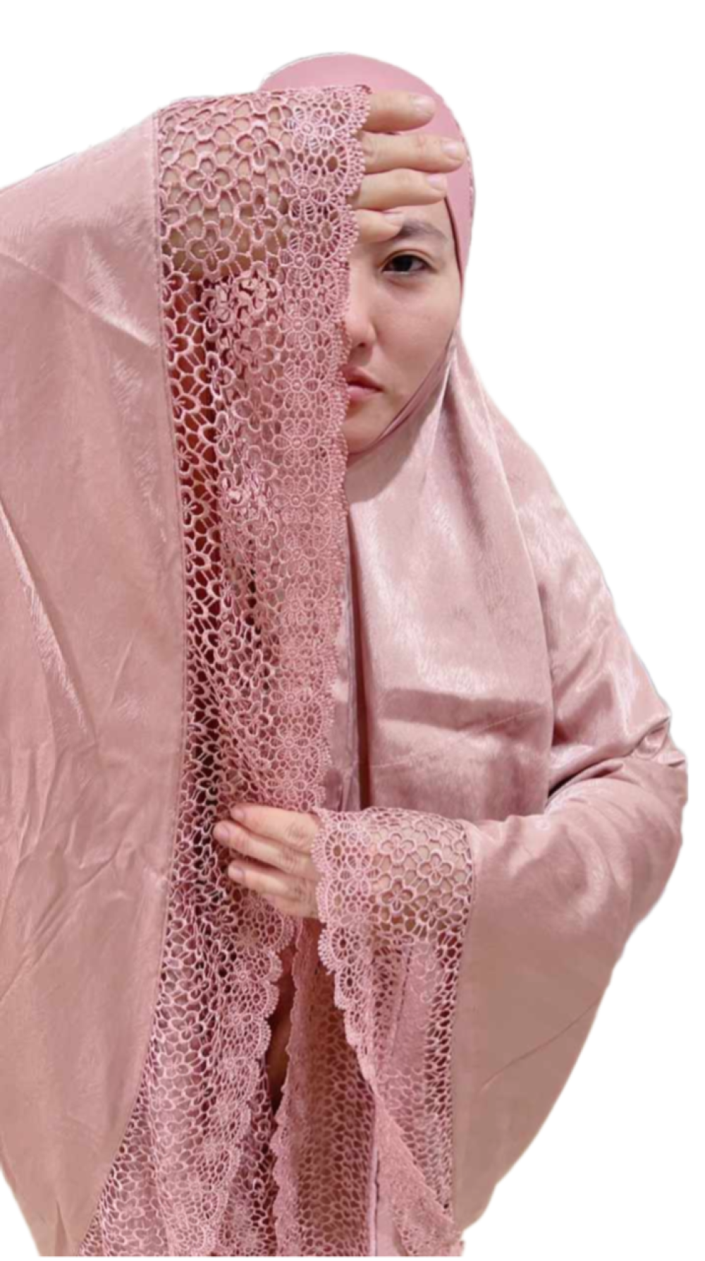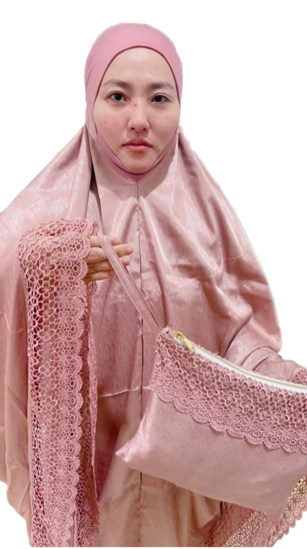 Made from Mai Embroidery that is durable, wrinkle-resistant, lightweight, and has a cooling sensation. It uses high-quality cotton machine embroidery art. The wide size and matching colour of the lace echo the telekung body to complete a truly refined aesthetic.